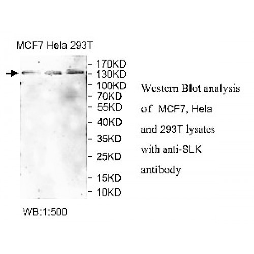 | Immunogen | Recombinant human SLK protein 127-327aa. |